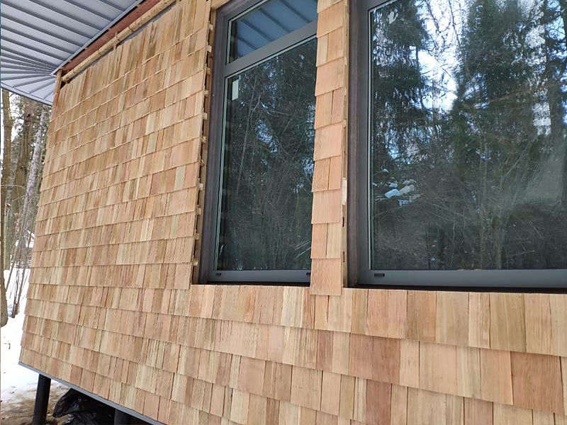 Проект частного дома на севере Москвы исполняется в комбинации гонта 40 см и Европленкена22 без обработки.