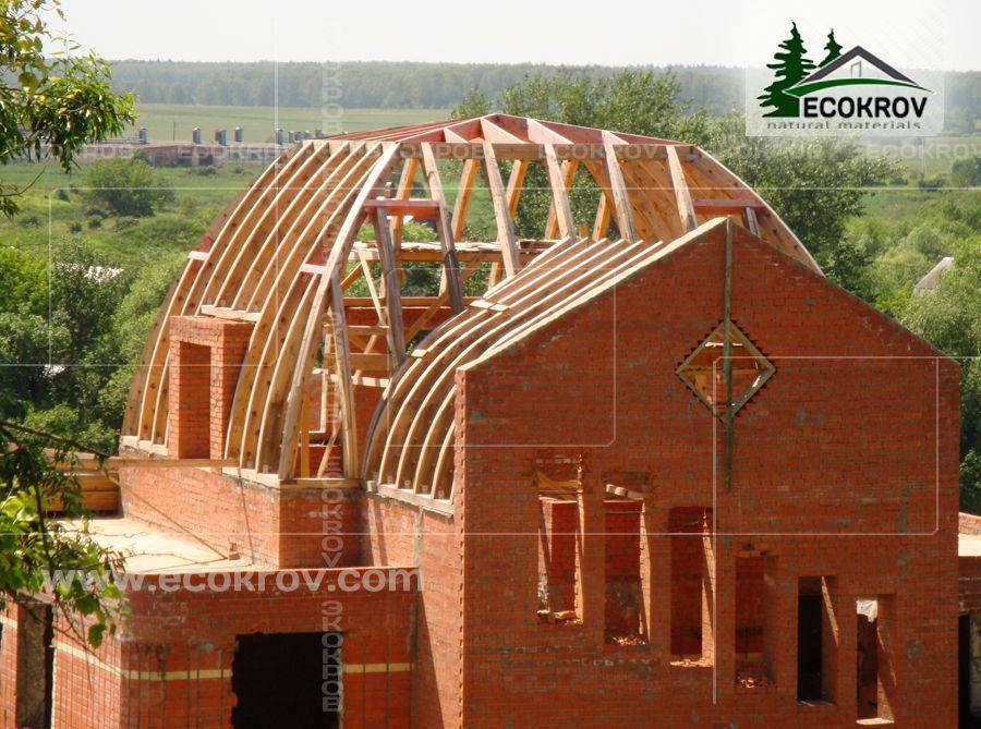 В ходе работ выполнен монтаж стропильной системы, устройство кровельного пирога, финишного покрытия ромбами из цинк-титана, монтаж систем снегозадержания и водостока.