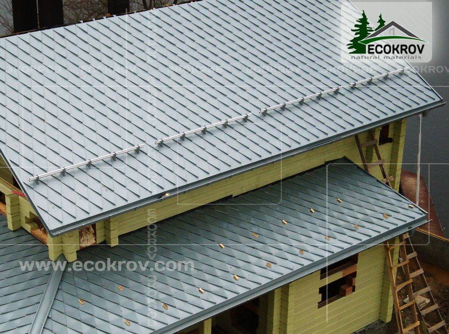 Материал для кровли - цинк-титан производства "RHEINZINK" патинированный серо-голубой.