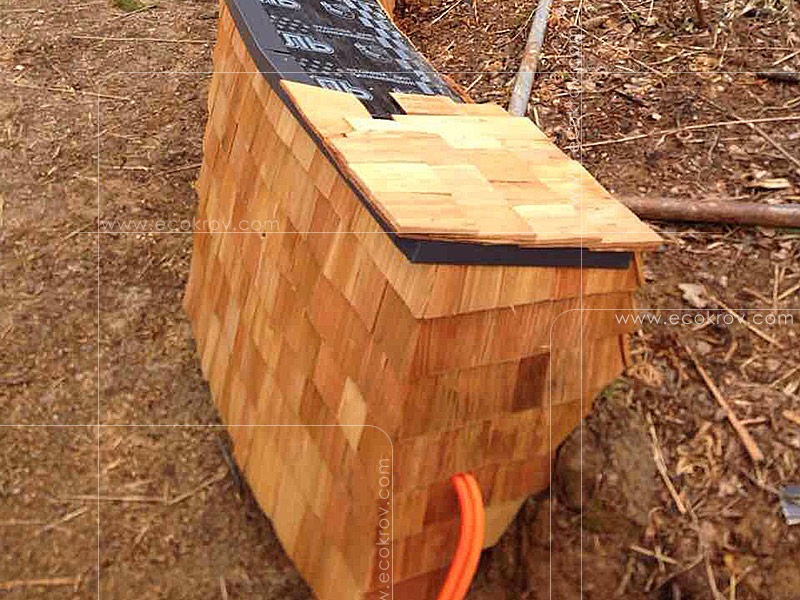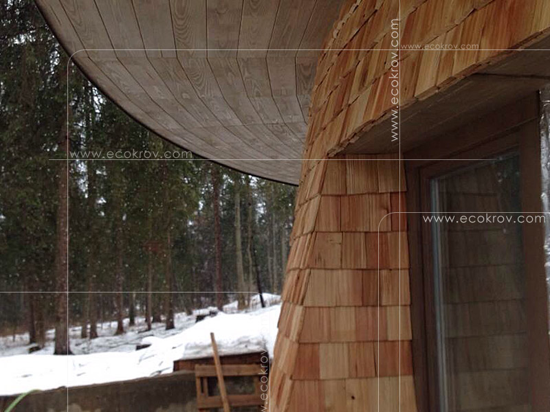 Вентилируемый фасад выполнен из колотого шинделя, сорт 1 длина 25 см.