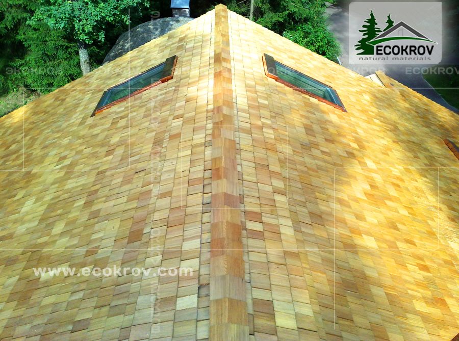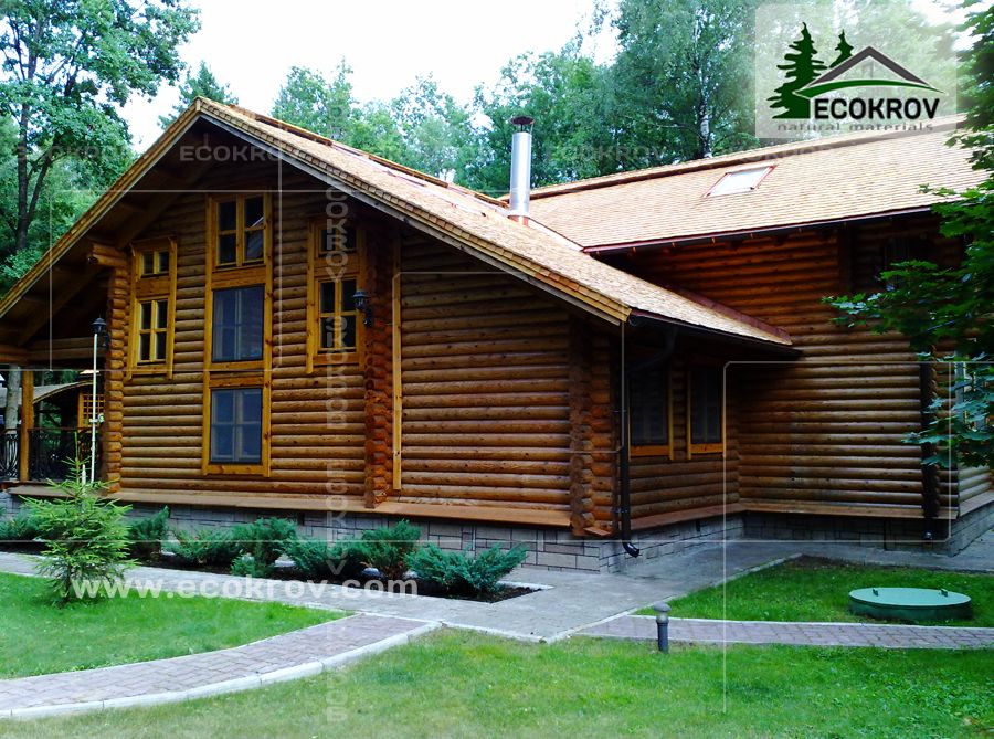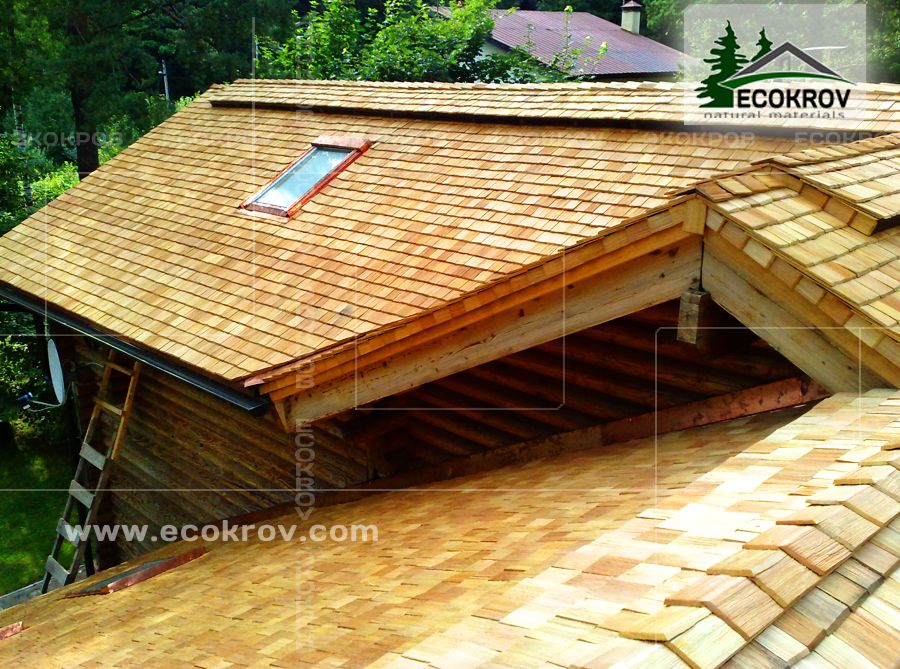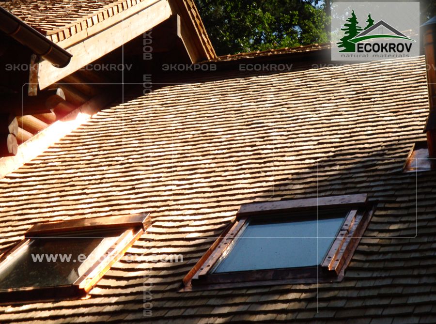 В качестве кровельного материала использован шиндель, дранка L=40 см, сорт 0, производство компании «ЭКОКРОВ».