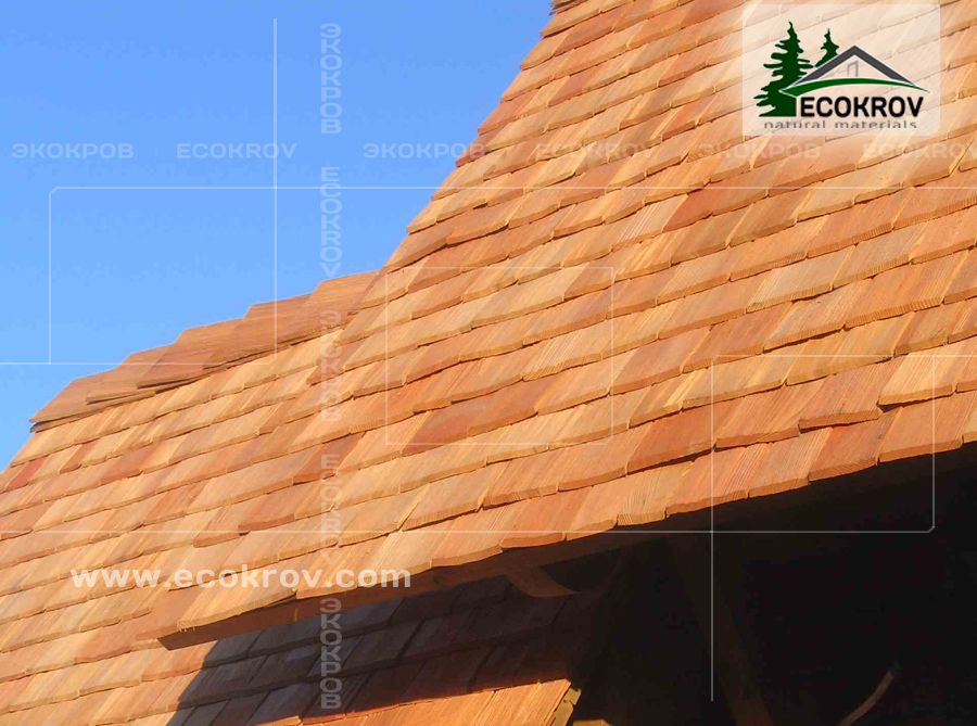 В качестве кровельного материала использован шиндель, дранка L=40 см, сорт 0, производство компании «ЭКОКРОВ».