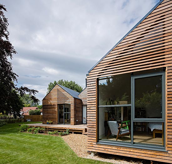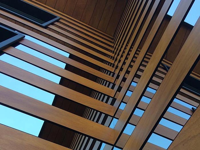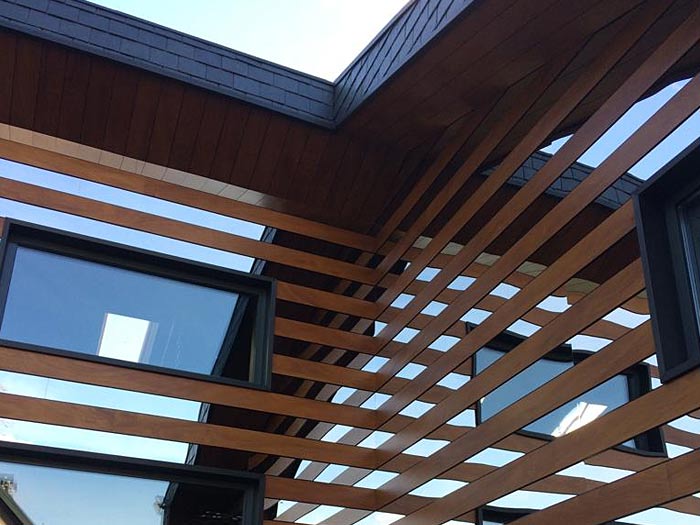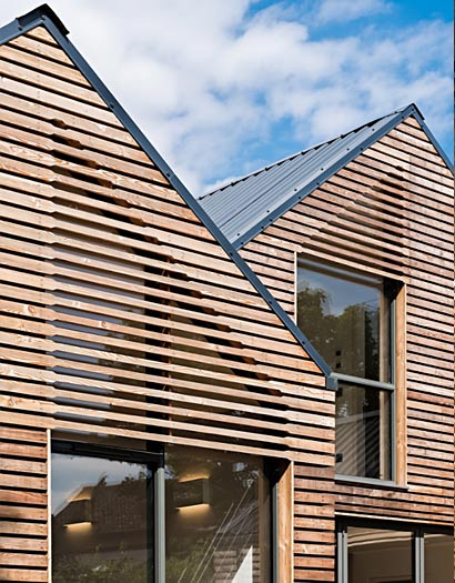 Реечный фасад - один из самых экономичных декоративных приемов. Рейки различного профиля и размера монтируются с заметным зазором. Данные декоративные решения, не распространены на наших широтах, смотрятся свежо и современно. Великолепно включаются в игру света и тени, вписываются в сложные ландшафтные архитектурные формы.