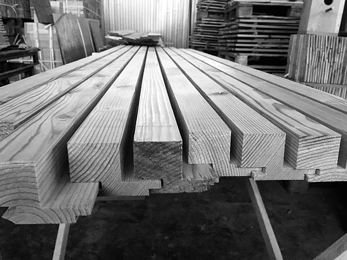 Компания Ecokrov изготавливает продукцию из мербау, дуба, лиственницы и хвойных пород древесины.